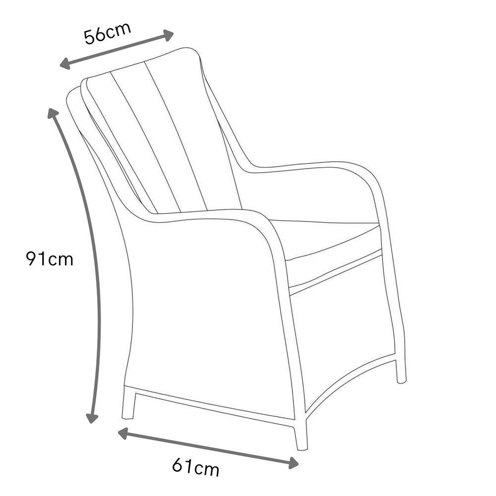 Elevate your outdoor seating with our 2x California Premium Arm Chairs. Crafted with a sturdy allumium frame and round weave rattan, these chairs in dark willow exude a modern and luxurious touch. The shower proof cushions provide added comfort for any weather. Transform your patio into a stylish oasis.