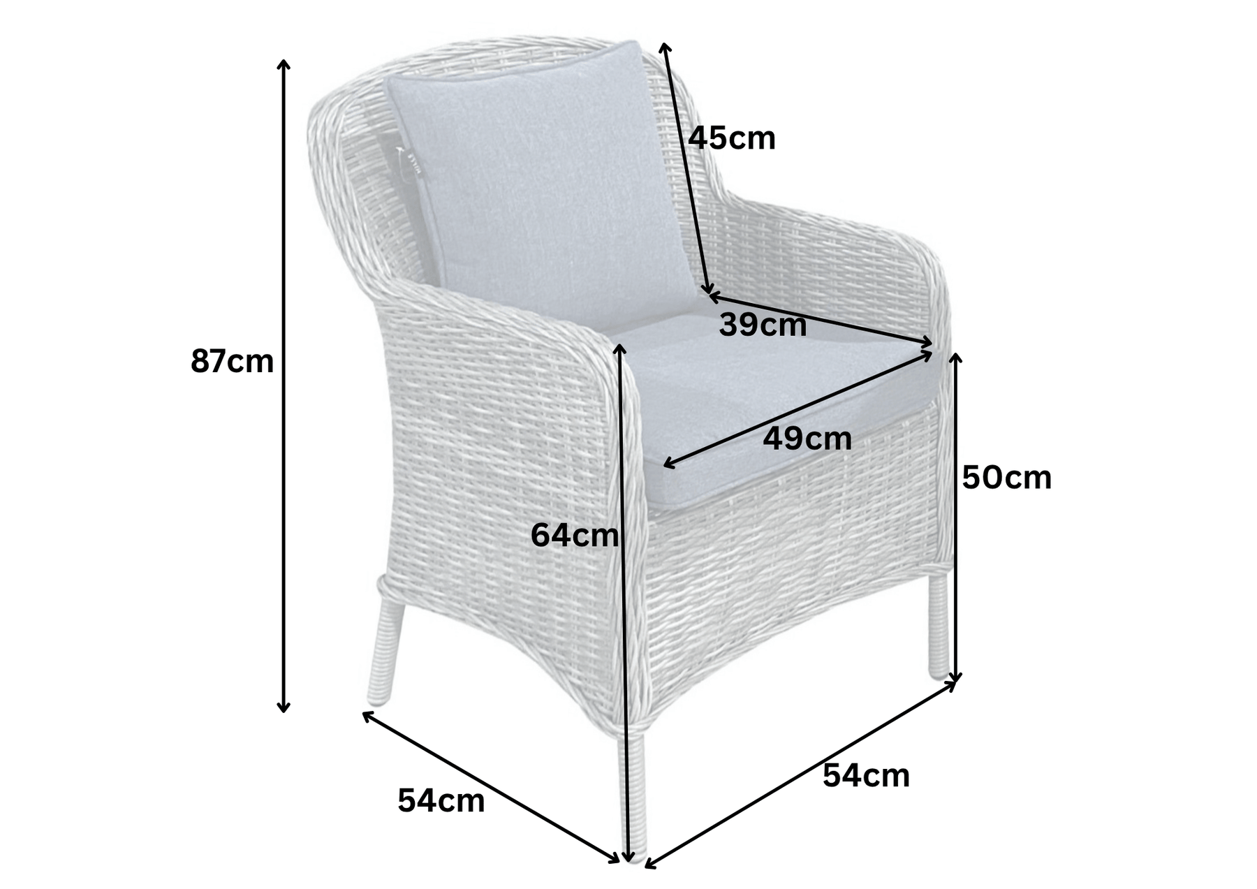 This lounge set combines 2 curved armchairs with luxurious sloped arms with a small bistro table, ideal for relaxing with a partner in the garden with drinks and snacks.