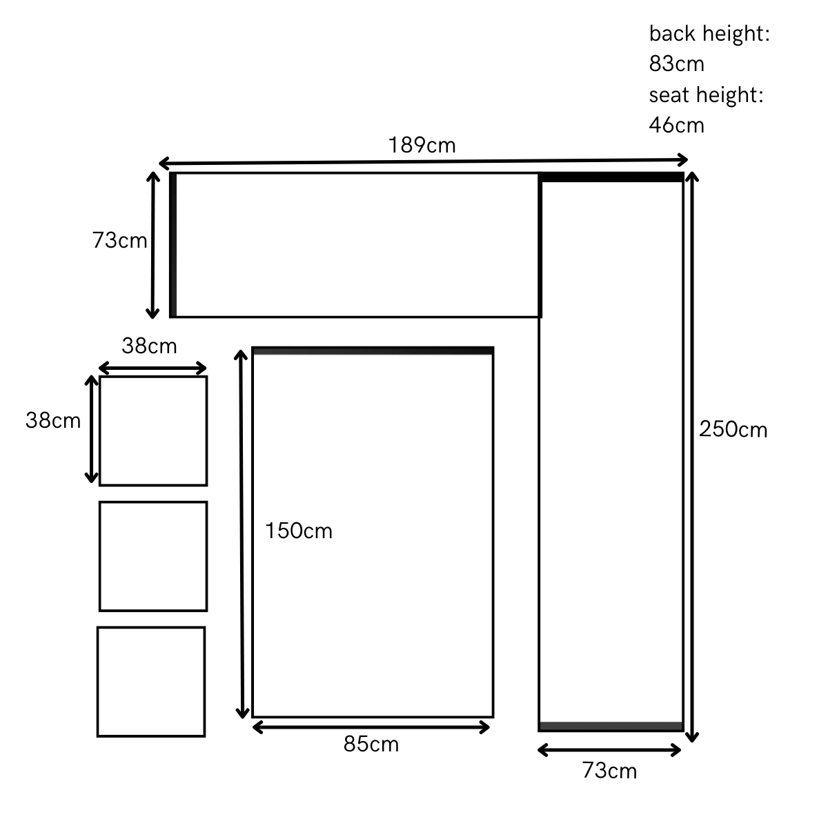 Width 250cm x Depth 189cm x Height 83 cm