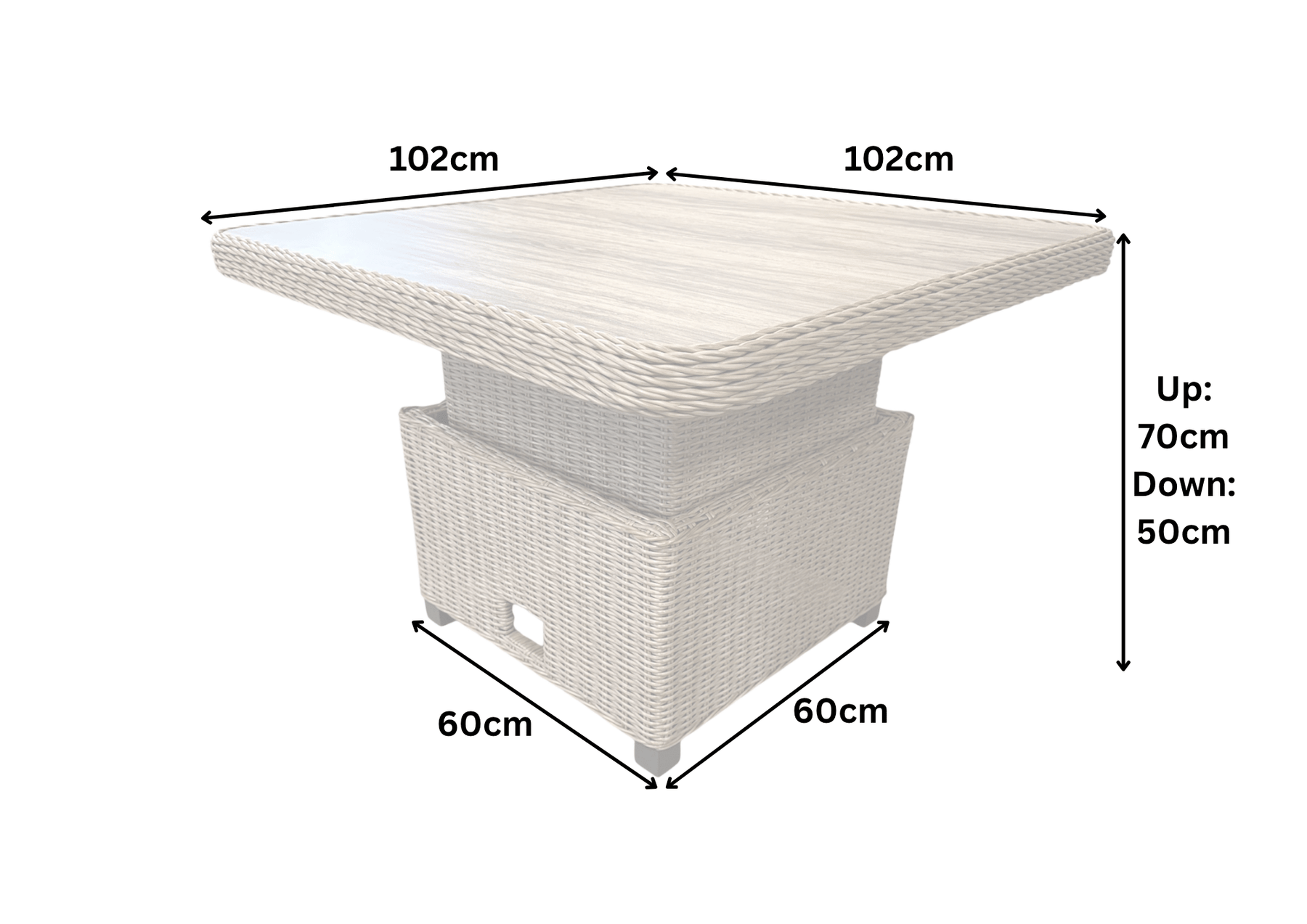Whether you're hosting summer BBQs, evening drinks, or relaxed weekend brunches, the clever height-adjustable rising table transforms effortlessly from a casual coffee table to a full dining table in seconds — giving you two functions in one elegant design.