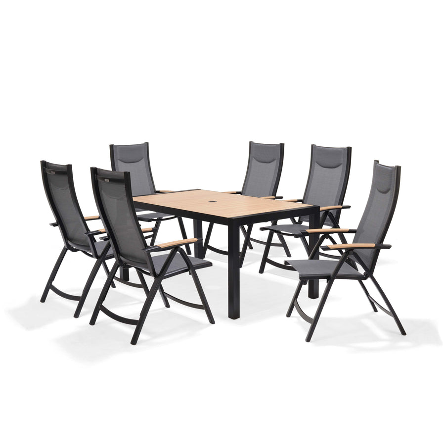 This practical garden dining set offers a brilliant combination of modern good looks and no-fuss maintenance. The recliner chairs in the six-person garden dining set offers extra versatility – they are perfect for relaxing in your conservatory or on your garden terrace.