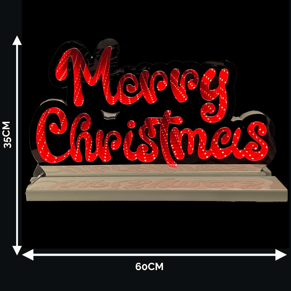 60cm Merry Christmas LED Infinity Light with Wooden Base