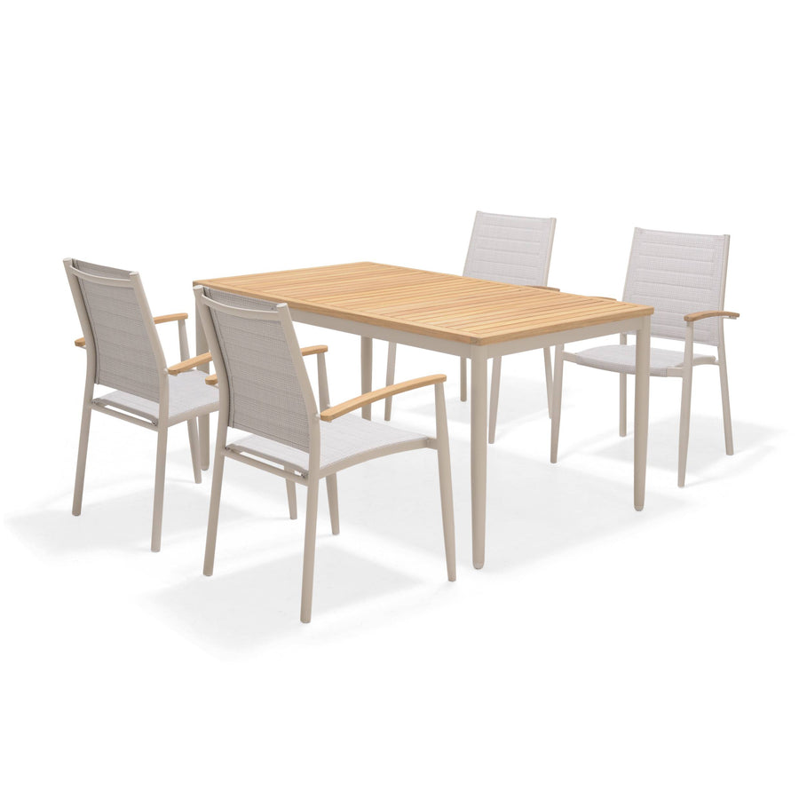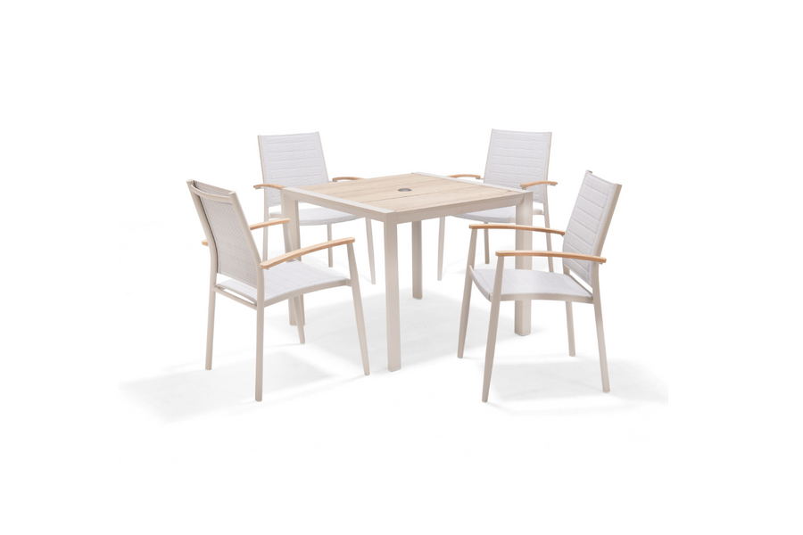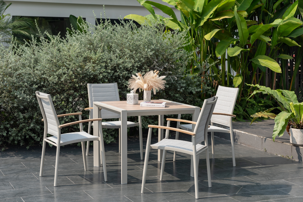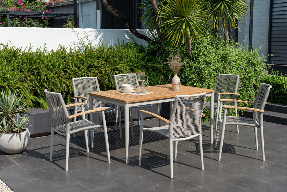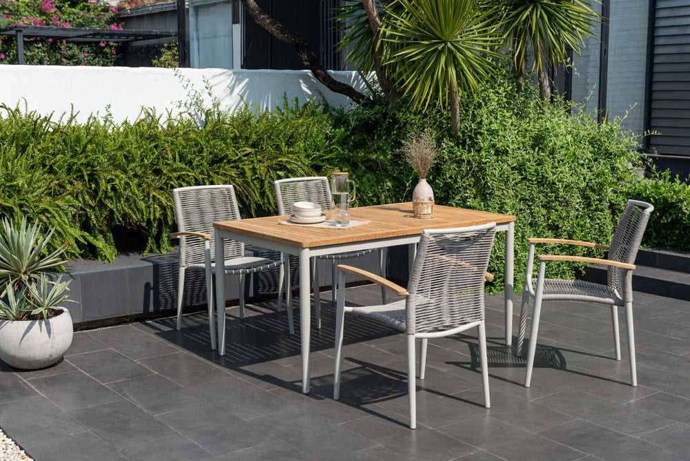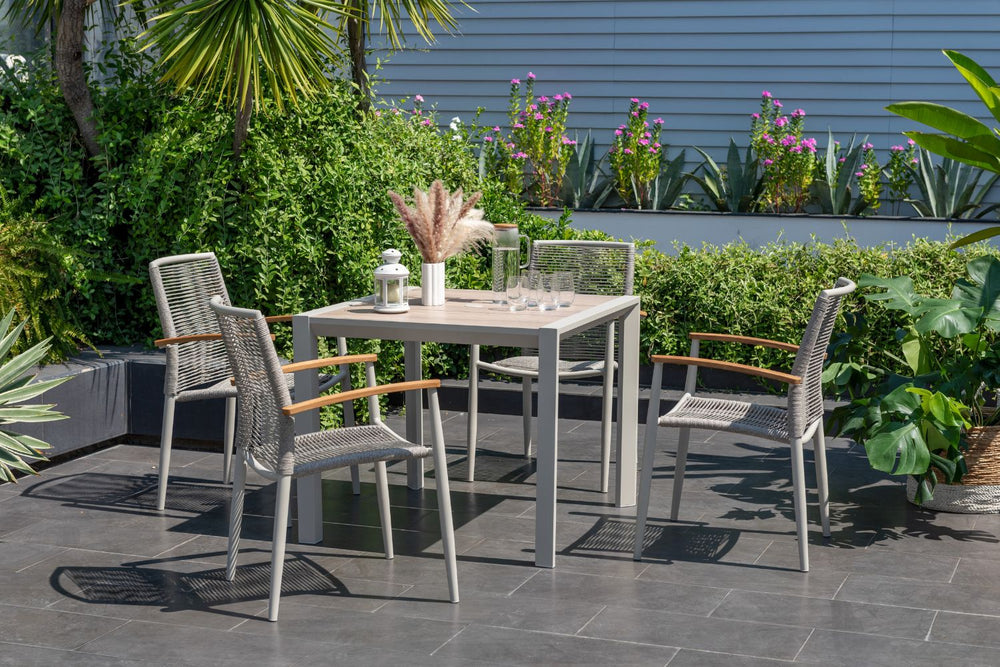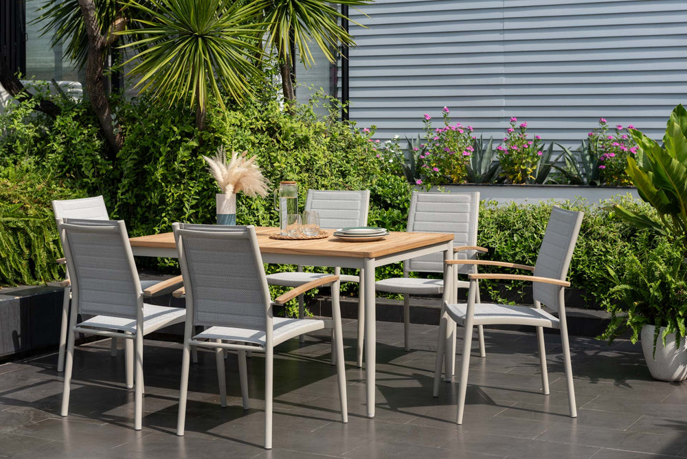 The Topaz collection by Lifestyle Garden is new height for outdoor dining. The stunning cream aluminium of the Topaz Light compliments the teak on the chair arms and table tops perfectly. Choose from a wide range of styles and set options at Hills Home and Garden.