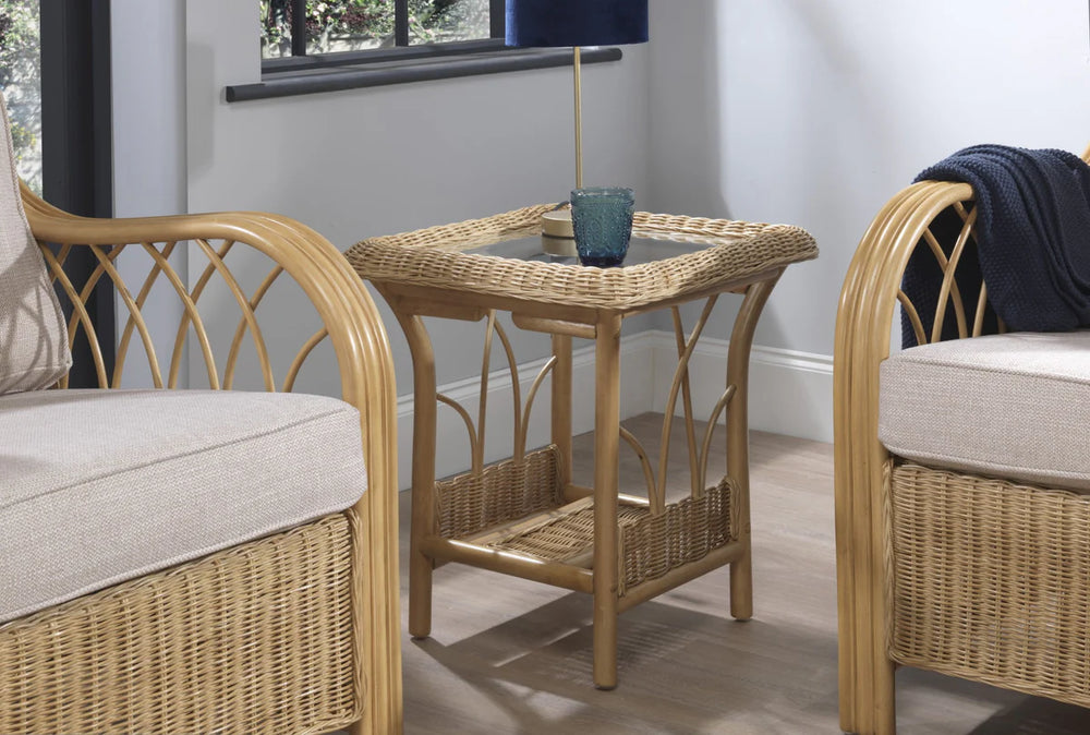 - Design Elements: Features a beautifully woven cane top and a sturdy glass surface